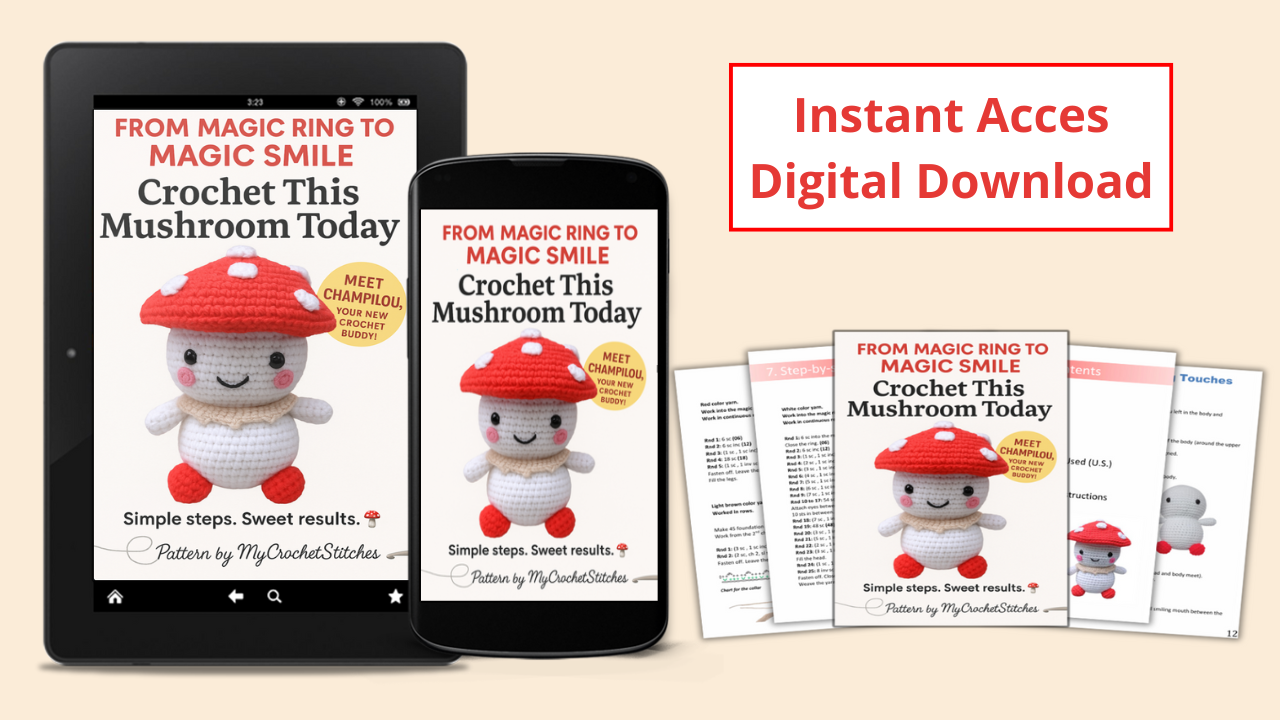 As soon as you're done, you’ll instantly access the **Champilou Crochet Pattern PDF** — No waiting, No stress.